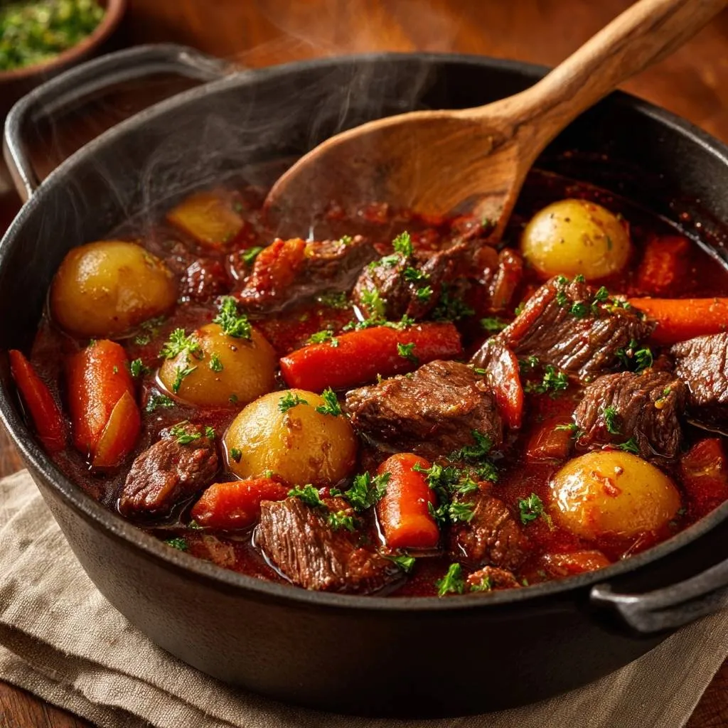 - Taste and adjust salt. Garnish with parsley. Serve hot. The sear-plus-simmer method guarantees no tough beef, even with budget cuts.