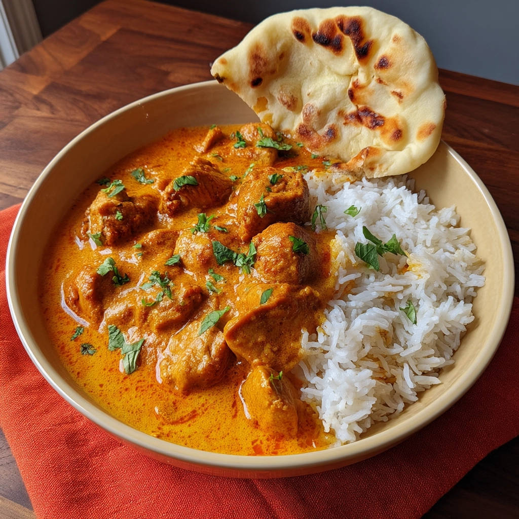 - Garnish and Serve: Remove from heat. Garnish generously with fresh chopped cilantro. Serve hot over cooked rice with naan bread on the side.