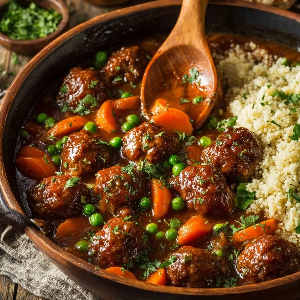 Juicy Meatball Stew with Carrots, Peas & Couscous