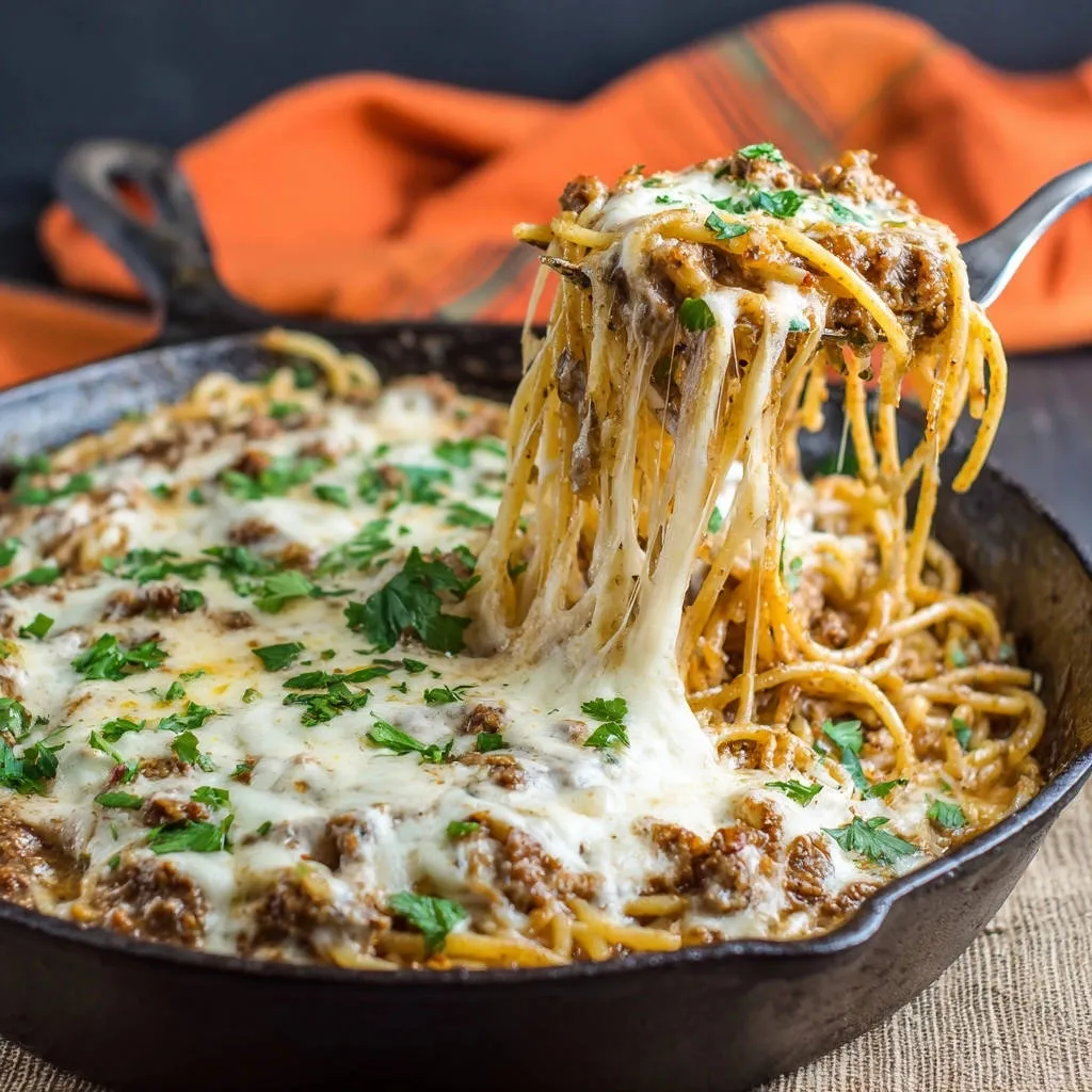 Melt the Cheese: Sprinkle the shredded mozzarella cheese evenly over the top of the spaghetti mixture in the pot. Return the pot to the oven, or place it under a broiler for 2-3 minutes, just until the cheese is beautifully melted and bubbly. Watch it closely under the broiler to prevent burning.