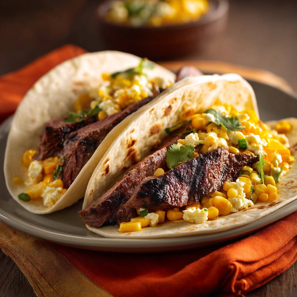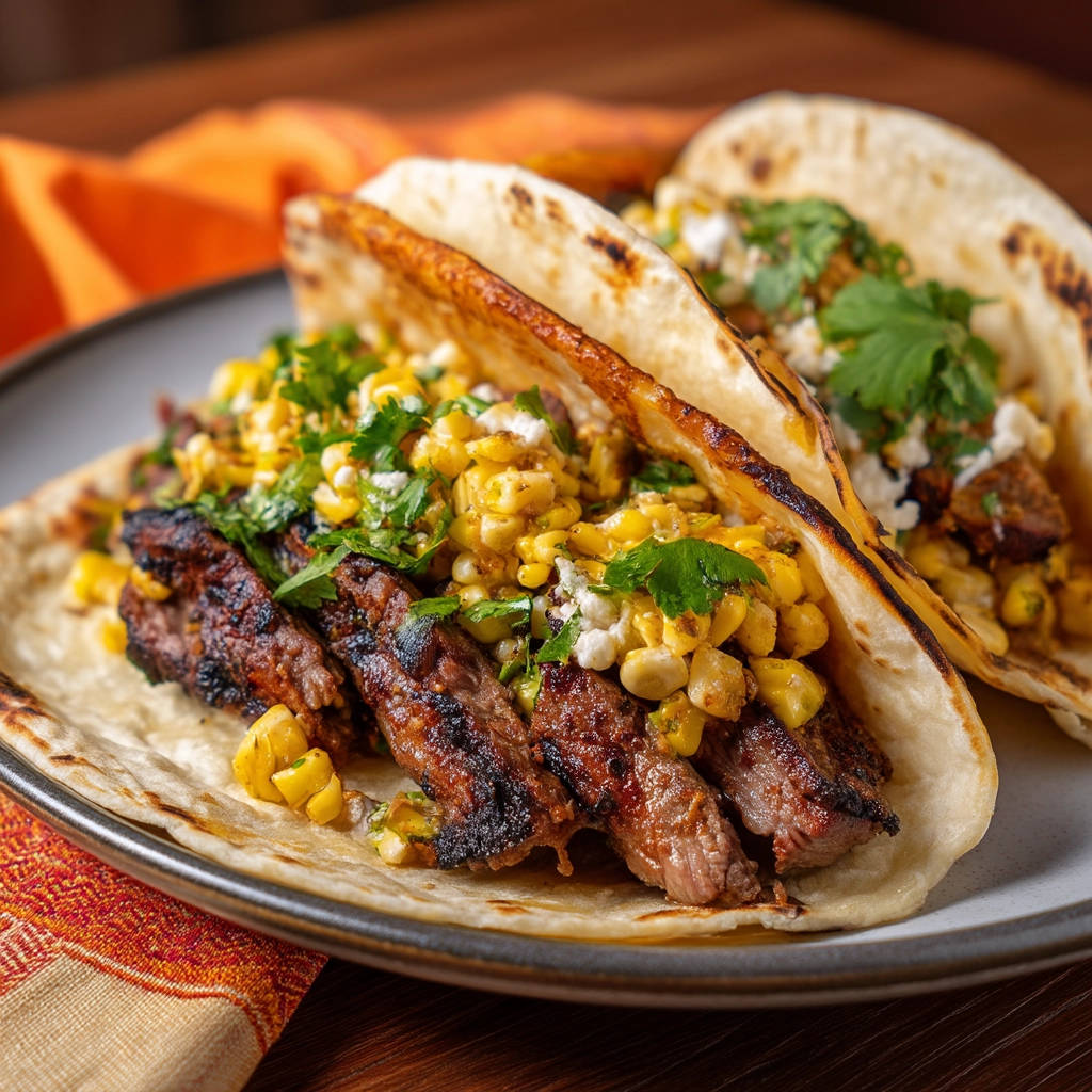 - Assemble and Devour! Assemble the tacos: Place some sliced steak onto each warm tortilla. Top generously with the corn salsa and crumbled cotija cheese. Serve immediately and enjoy!