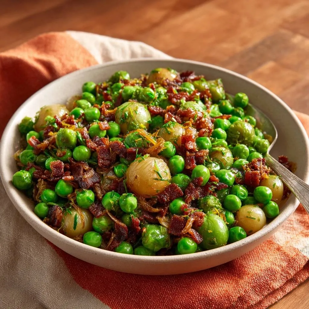 The real secret? Cook peas just 1-2 minutes in that hot fat. They turn vibrant green and hold firm. You’ll never go back to mushy lemon bacon peas again.