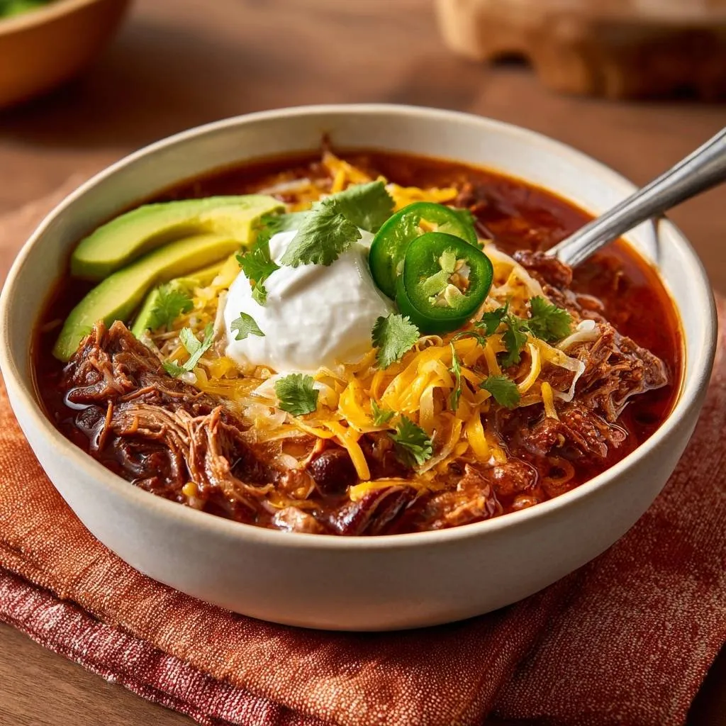 Standard chilis often end up tough and watery. This loaded beef chili, however, delivers juicy, flavor-soaked meat thanks to collagen turning into silky gelatin during the braise. Plus, the spice blend builds deep warmth without overpowering.