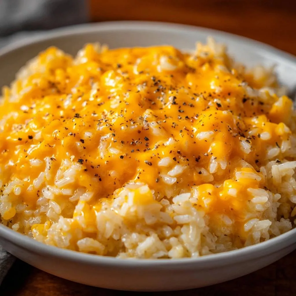 - To achieve the visual result in the image: Transfer the hot rice to a serving bowl. Immediately sprinkle the shredded cheddar cheese and cracked black pepper over the top. Do not stir. Cover the bowl with a large plate or lid for 60 seconds to allow the residual steam to melt the cheese into a thick, molten layer over the individual grains.