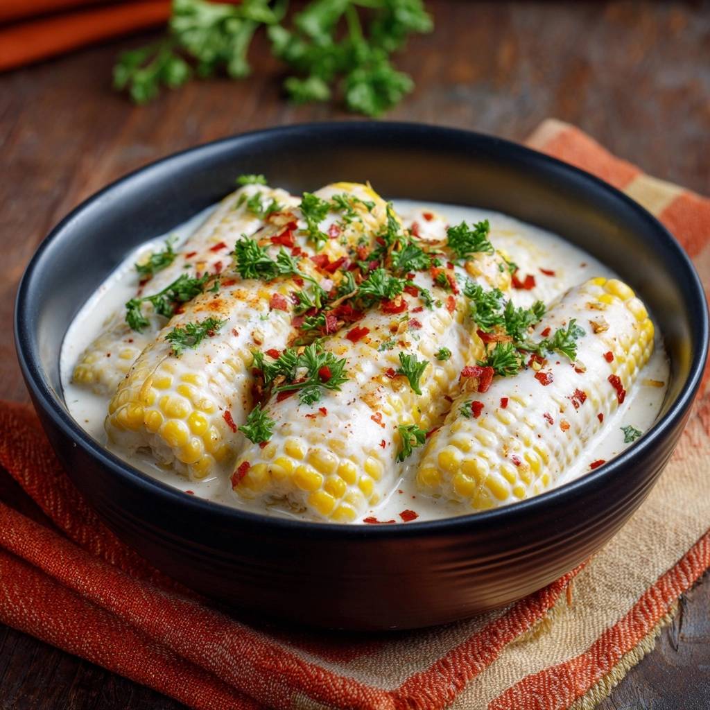 Wait until the very last second to add your garnishes. The bright green parsley and vibrant red chili flakes provide a stunning visual contrast against the white cream and golden corn. If you garnish too early, the herbs will wilt into the hot sauce. Serve them immediately while the corn is at its peak “snappy” texture.