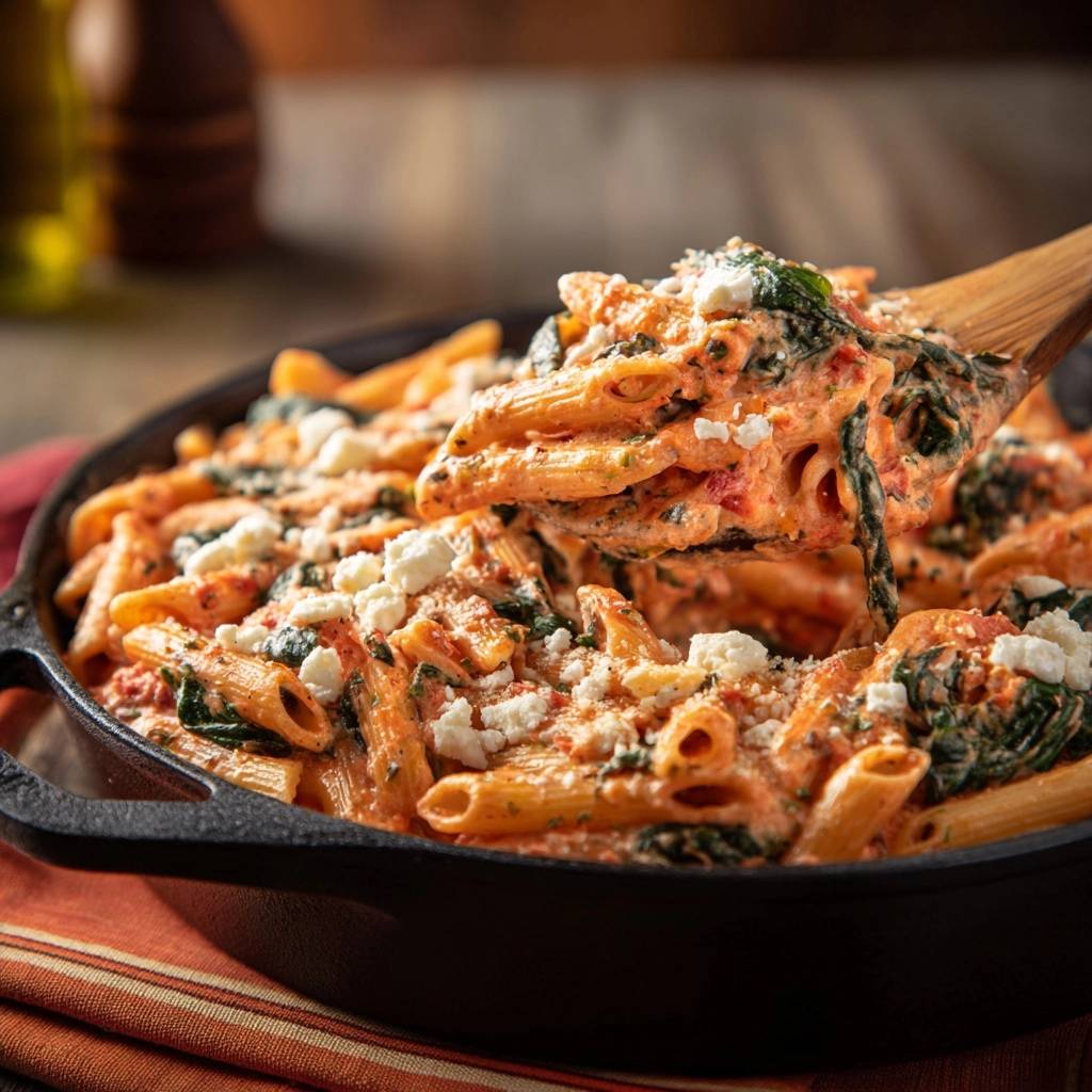 Imagine a forkful of pasta where every single ridge of the penne is coated in a thick, velvet-like sauce that tastes of concentrated summer. You get the sharp, salty pop of feta followed by the deep, caramelized sweetness of sun-dried tomatoes. It’s the kind of meal that feels like a splurge at a high-end bistro, yet it comes together in your own kitchen in about 30 minutes.