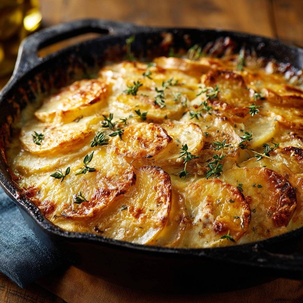 The secret to a truly transformative side dish lies in the skillet method. By using a cast iron pan and a vertical shingling technique, we create a sensory masterpiece of textures. You get shatteringly crisp, golden-brown ridges on top that contrast beautifully with the tender, cream-soaked interior. It is the ultimate upgrade to a classic comfort food that finally delivers on the promise of a perfect crunch.