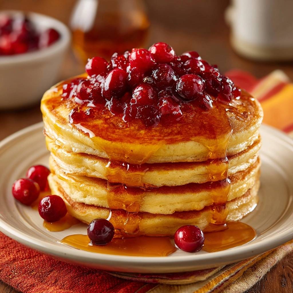 - Stack the pancakes high. Spoon the warm, whole-berry cranberry maple compote generously over the top, allowing the syrup to soak into the layers.