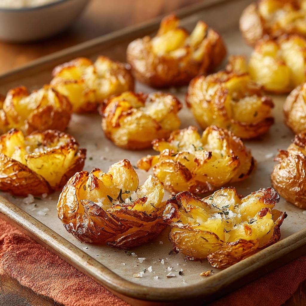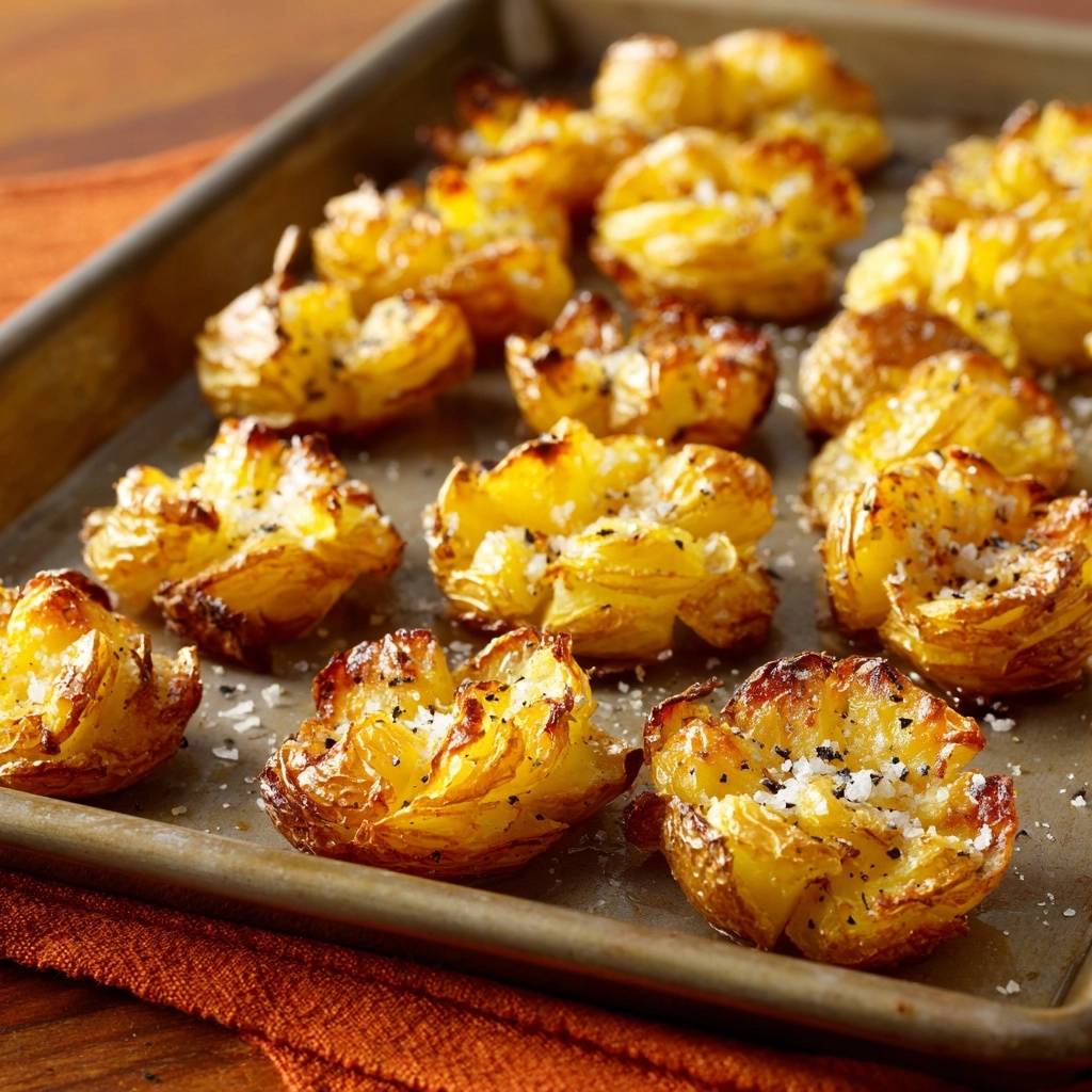 Why do we use baby gold potatoes instead of a standard Russet? It comes down to the balance of starch and sugar. Gold potatoes have a naturally creamy, waxy texture that holds its structural integrity when smashed. While a Russet might fall apart into a pile of mashed potatoes, the gold variety creates a sturdy “base” with thin, petal-like edges that crisp up beautifully.