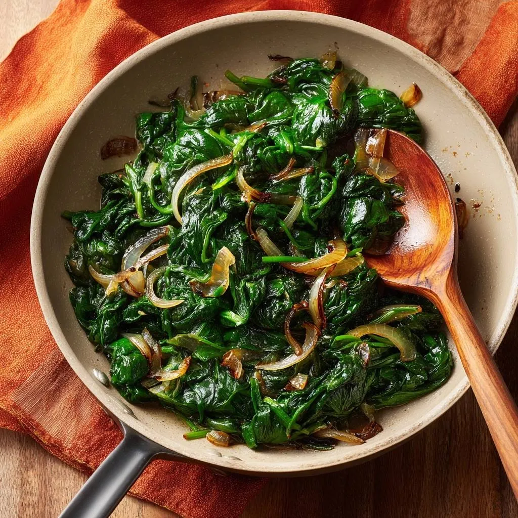 Another tip is to use a slotted spoon for plating. Even the most perfectly sautéed spinach will have a tiny bit of steam moisture. By using a slotted spoon, you ensure that only the flavorful greens and onions make it to the plate, keeping the presentation clean and professional.