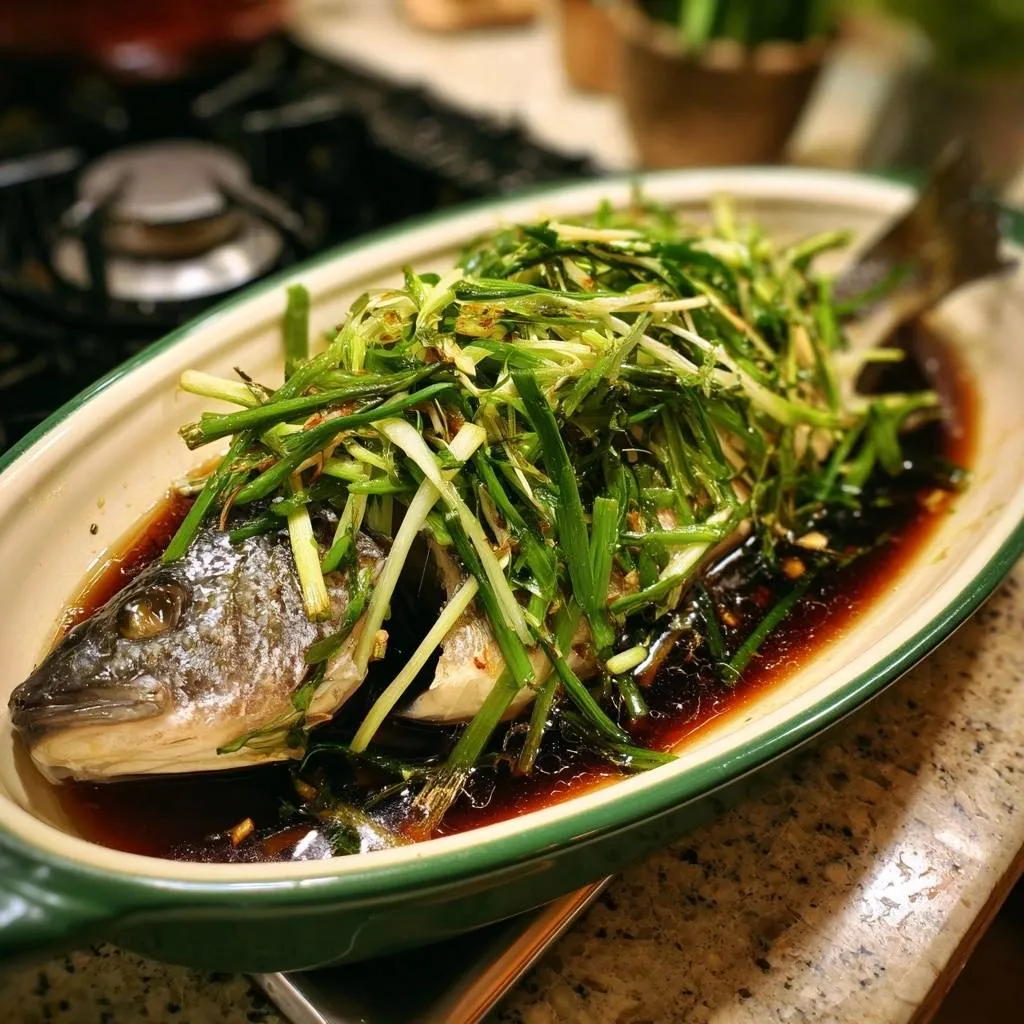 This creates an instant emulsion between the hot oil and the soy sauce. The result is a silky, fragrant dressing that coats the fish without being greasy. The contrast between the hot, seasoned oil and the cool, tender meat is the hallmark of a perfectly executed steamed fish. Serve it immediately while the sizzle is still fresh.