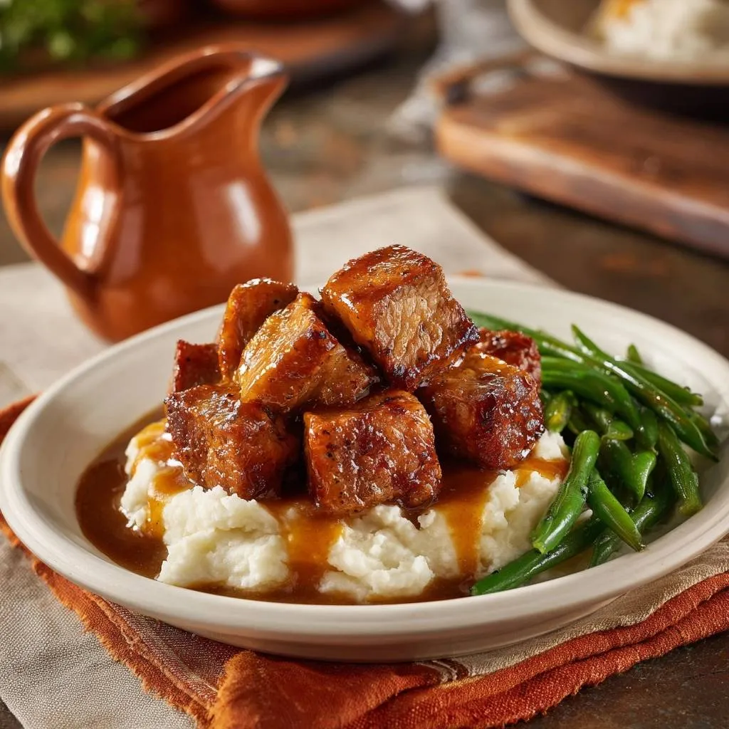 This recipe transforms humble beef tips into a dish that feels like a high-end steakhouse favorite. By using a light dusting of cornstarch, we create a micro-thin, crispy crust that acts like a sponge for the savory-sweet glaze. When that crispy exterior meets the silky, buttery texture of homemade mashed potatoes, it creates a mouthfeel that is pure comfort. You’ll get that satisfying crunch followed by a tender, juicy center in every single bite.