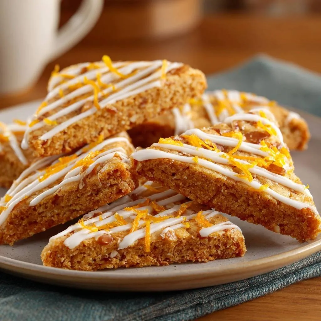 - Once completely cool, use a spoon or piping bag to drizzle the glaze in a zig-zag pattern across the scones. Immediately top with fresh orange zest strips so they adhere to the wet glaze for a professional, vibrant look.