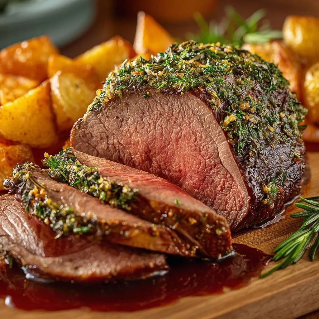 Herb Crusted Roast Beef with Golden Potatoes