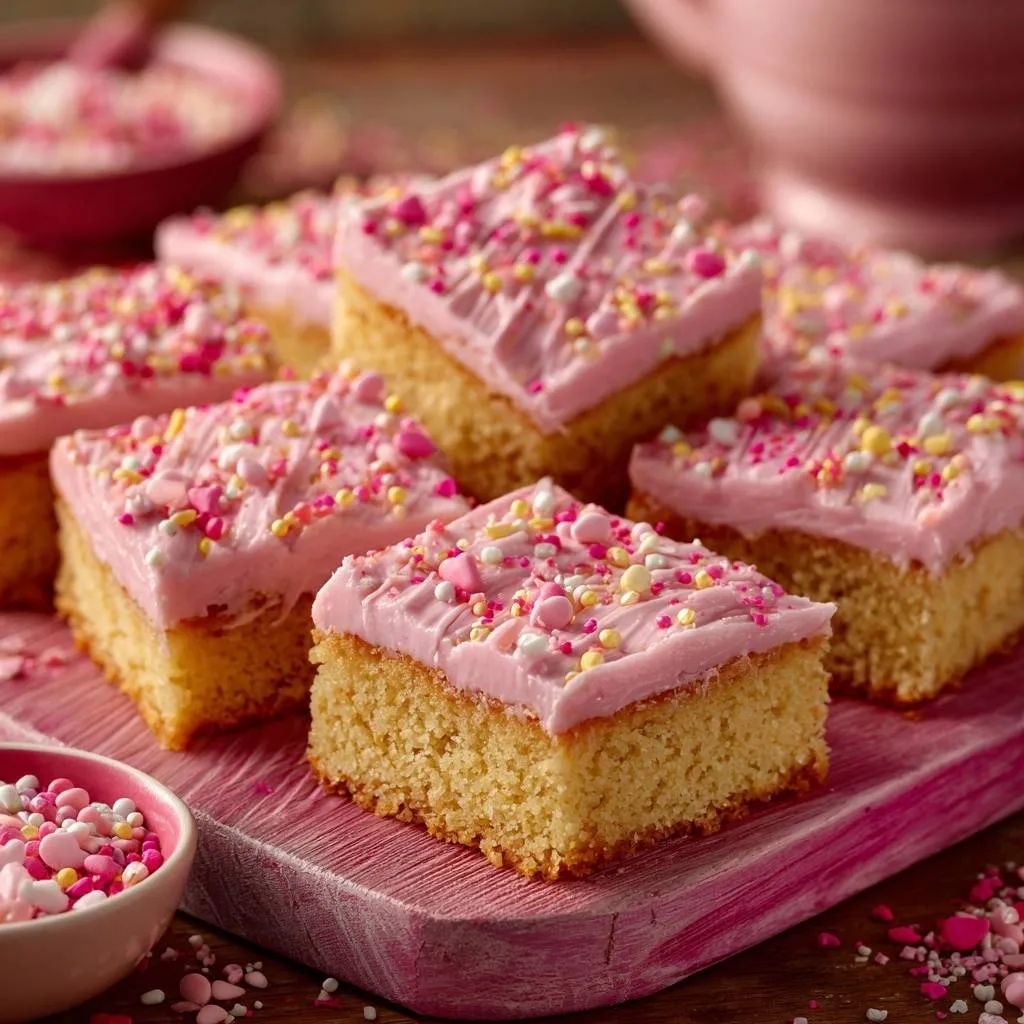 The glaze for these squares needs to be thick and opaque, almost like a liquid fondant. By whisking together powdered sugar, heavy cream, and a touch of melted butter, you create a topping that is rich and glossy. The heavy cream provides a much better mouthfeel and a whiter base for your pink coloring than water or milk ever could.