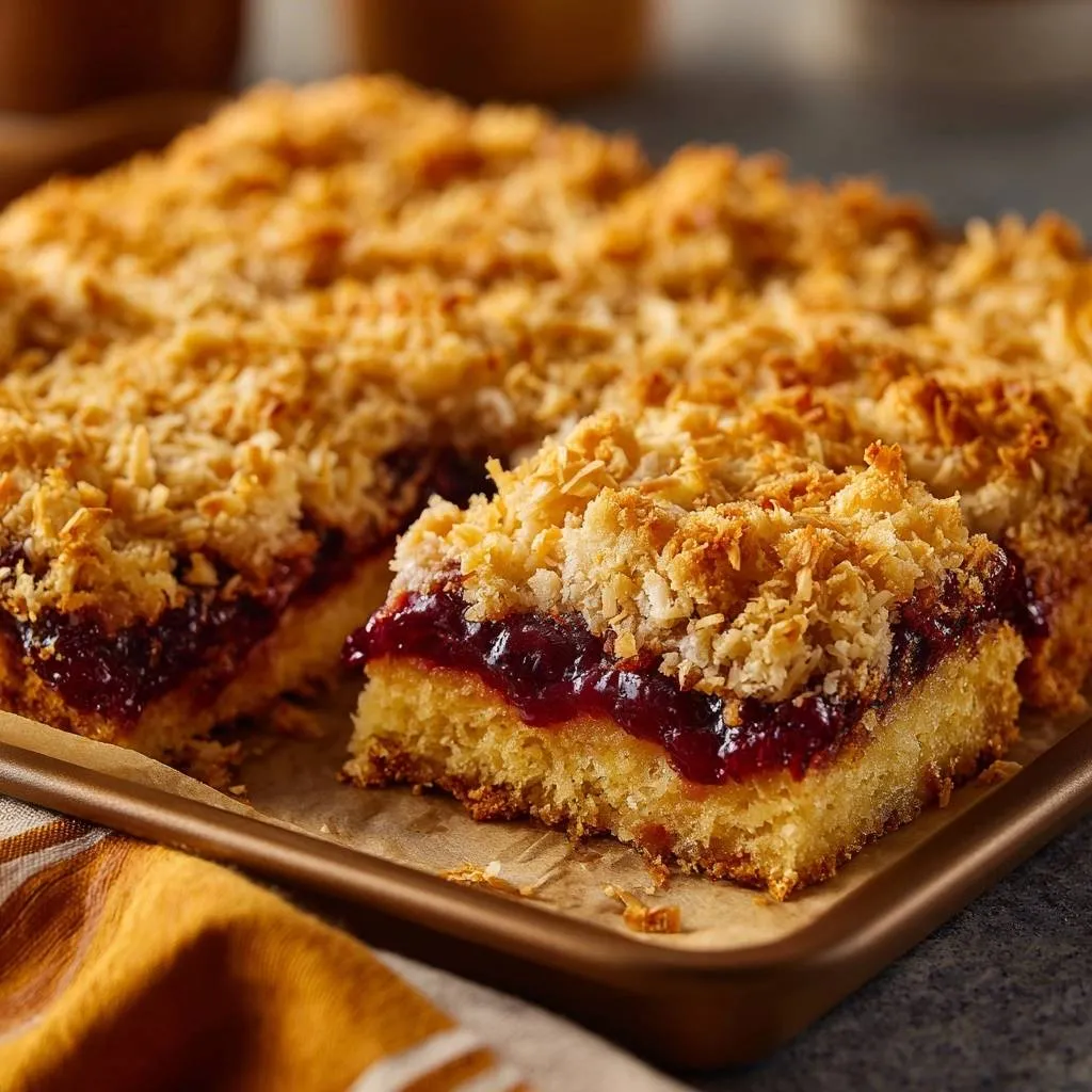 Imagine biting into a bar where the sharp, bright tang of raspberries meets the tropical, chewy sweetness of toasted coconut. You get that initial crunch from a buttery shortbread base, followed by a jammy center that stays exactly where it belongs. It is a textural masterpiece that feels like a fancy bakery find, yet it comes together in your own kitchen with simple pantry staples.