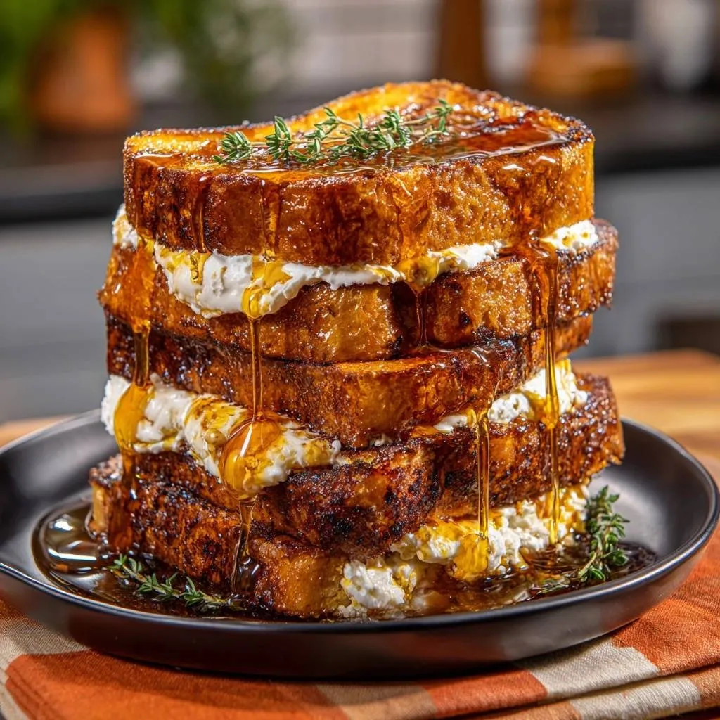 The flavor profile relies on the balance of honey and lemon zest within the cheese. The honey provides a mellow sweetness, while the lemon zest cuts through the heavy fats of the brioche and heavy cream. Additionally, using a blend of unsalted butter and neutral oil (like grapeseed) is vital. The oil raises the smoke point, allowing you to fry the toast long enough to melt the center without the butter solids burning and turning bitter.