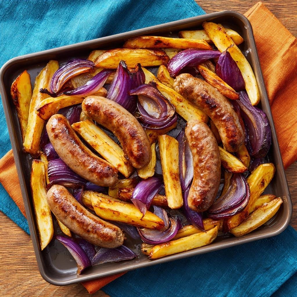 If you find your wedges are still limp, it usually means the oven temperature dropped too much or the pan was overcrowded. If this happens, don’t panic. You can turn the heat up to 450°F for the last five minutes, but watch it closely. Another common issue is onions browning too fast. If they look like they are going to burn, simply move them to the center of the pan where it is slightly shielded by the sausages.