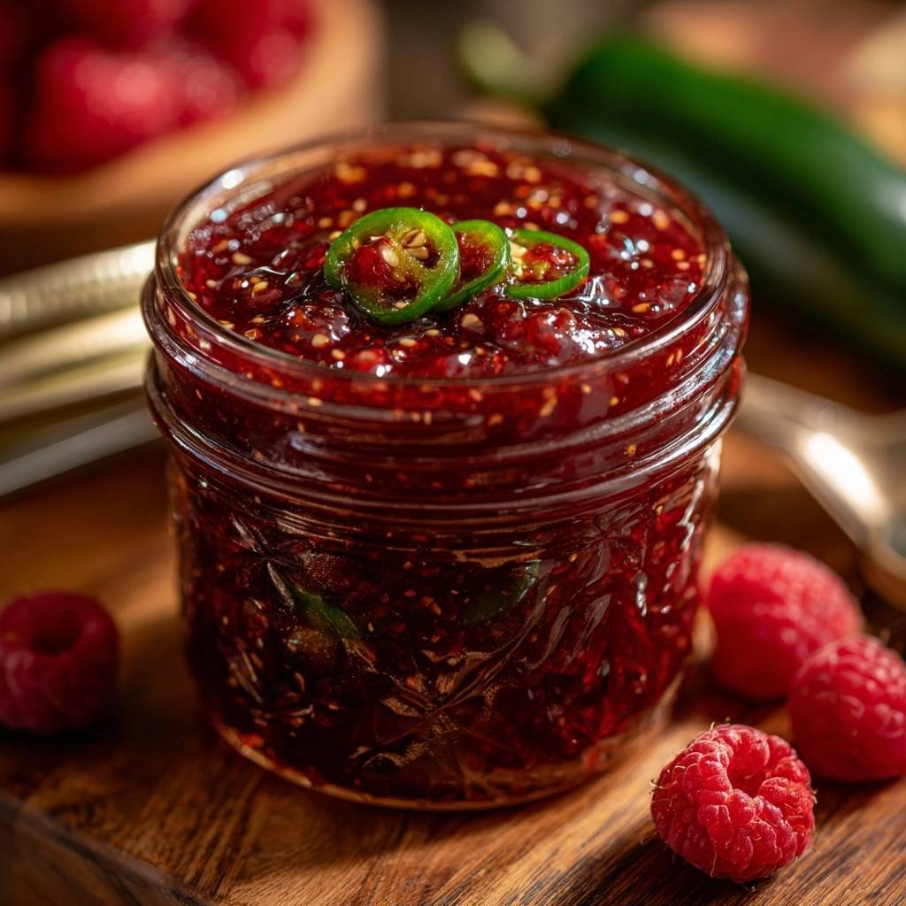 This jam is incredibly versatile and goes far beyond breakfast. It is a classic companion for a cheese board, pairing beautifully with sharp aged cheddar, creamy brie, or salty manchego. The sweetness of the raspberries cuts through the richness of the cheese, while the jalapeno adds a sophisticated finish.