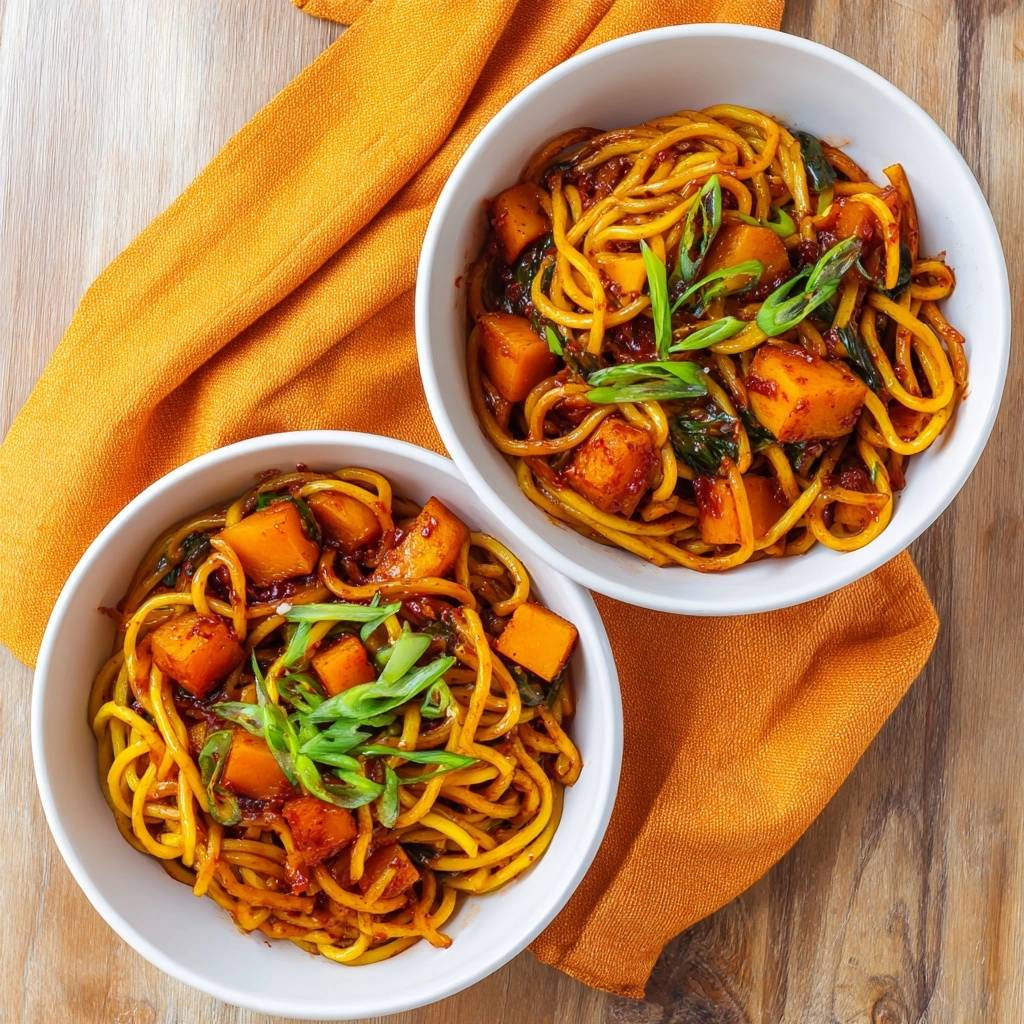 Yes, you can substitute with thick wheat noodles or even linguine in a pinch. If using dried pasta, cook it for one minute less than the package directions so it stays “al dente.” This prevents it from falling apart when you toss it in the wok with the heavy sauce. Avoid thin noodles like vermicelli, as they won’t hold up to the weight of the roasted squash.