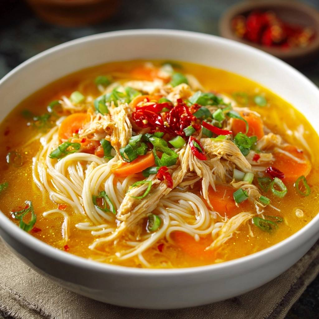 This Spicy Shredded Chicken Noodle Soup is designed to wake up your palate with the bold heat of chili oil and the earthy, golden glow of turmeric. The broth is light yet deeply savory, providing the perfect backdrop for tender, hand-shredded chicken. By changing how you handle the starch, you can ensure every spoonful offers a clean, restaurant-quality experience with noodles that stay perfectly al dente.