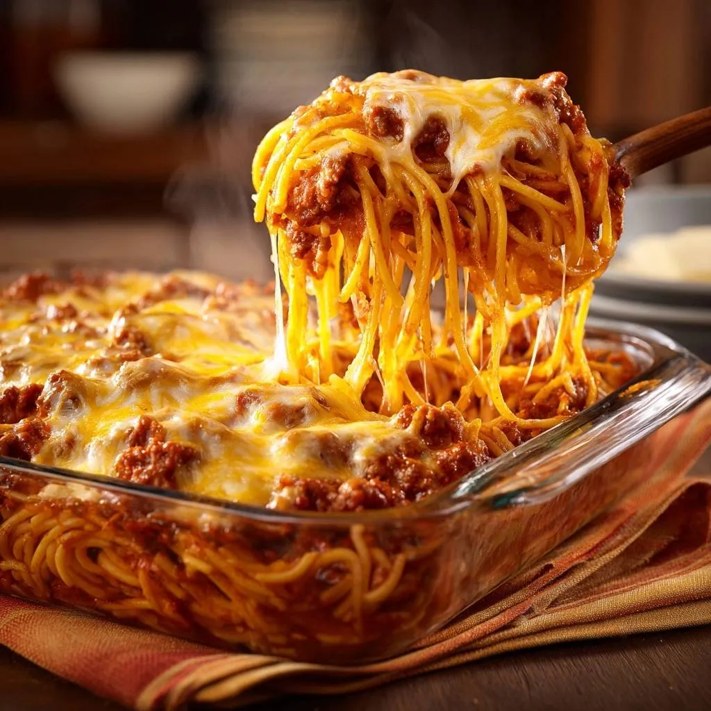 Most people make the mistake of layering plain noodles in a dish and pouring sauce over the top. This is a recipe for disaster because the sauce never reaches the center, and the noodles end up sticking together in a dry clump. Instead, you must toss the undercooked spaghetti directly into the skillet with the meat sauce before it ever touches the baking dish.