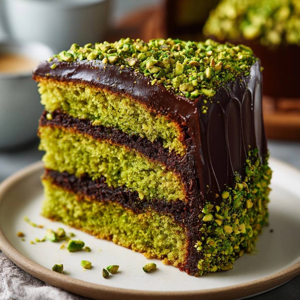Chocolate Glazed Pistachio Layer Cake
