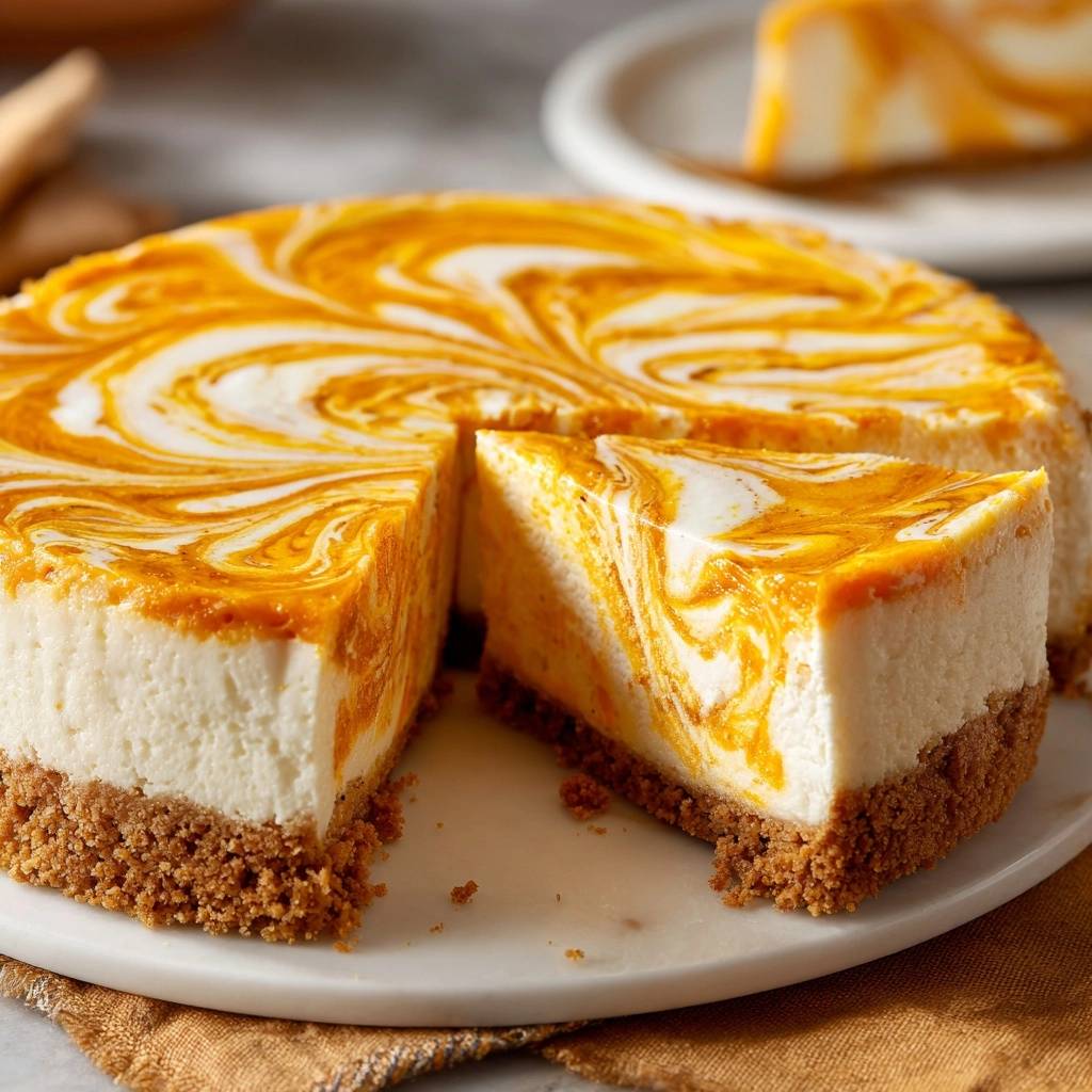 As the leaves begin their vibrant shift to amber and the air turns crisp, my kitchen naturally gravitates toward the warm, earthy scents of autumn baking. There is something undeniably sophisticated about a Creamy Pumpkin Swirl Cheesecake sitting on a dessert pedestal. The intricate marble pattern, with its deep orange ribbons dancing through a snowy white base, makes it the undisputed crown jewel of any holiday spread.