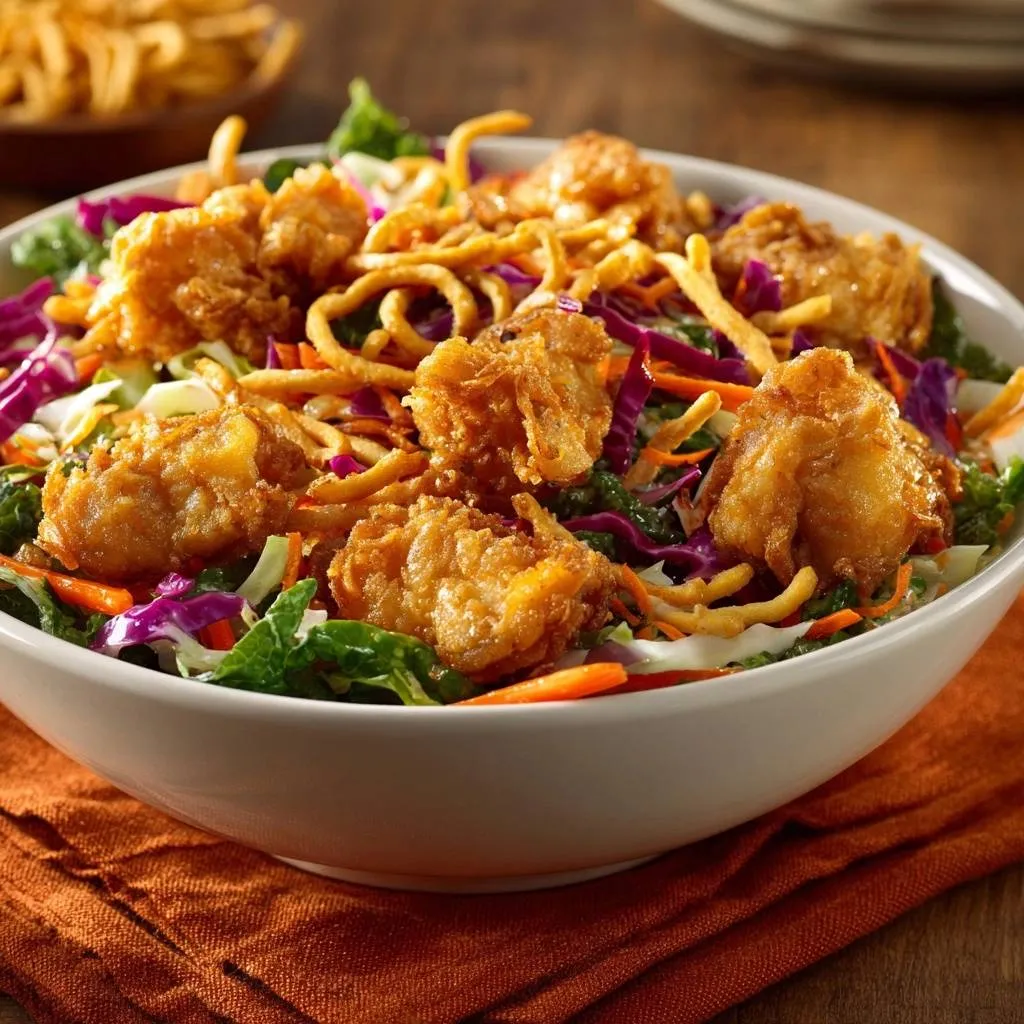 Never skip the green onions! Their sharp, fresh bite provides a necessary contrast to the savory, fried chicken. Similarly, if you are making a homemade dressing, use freshly grated ginger rather than the powdered stuff. The warmth of fresh ginger cuts through the richness of the oil and brightens the entire dish.