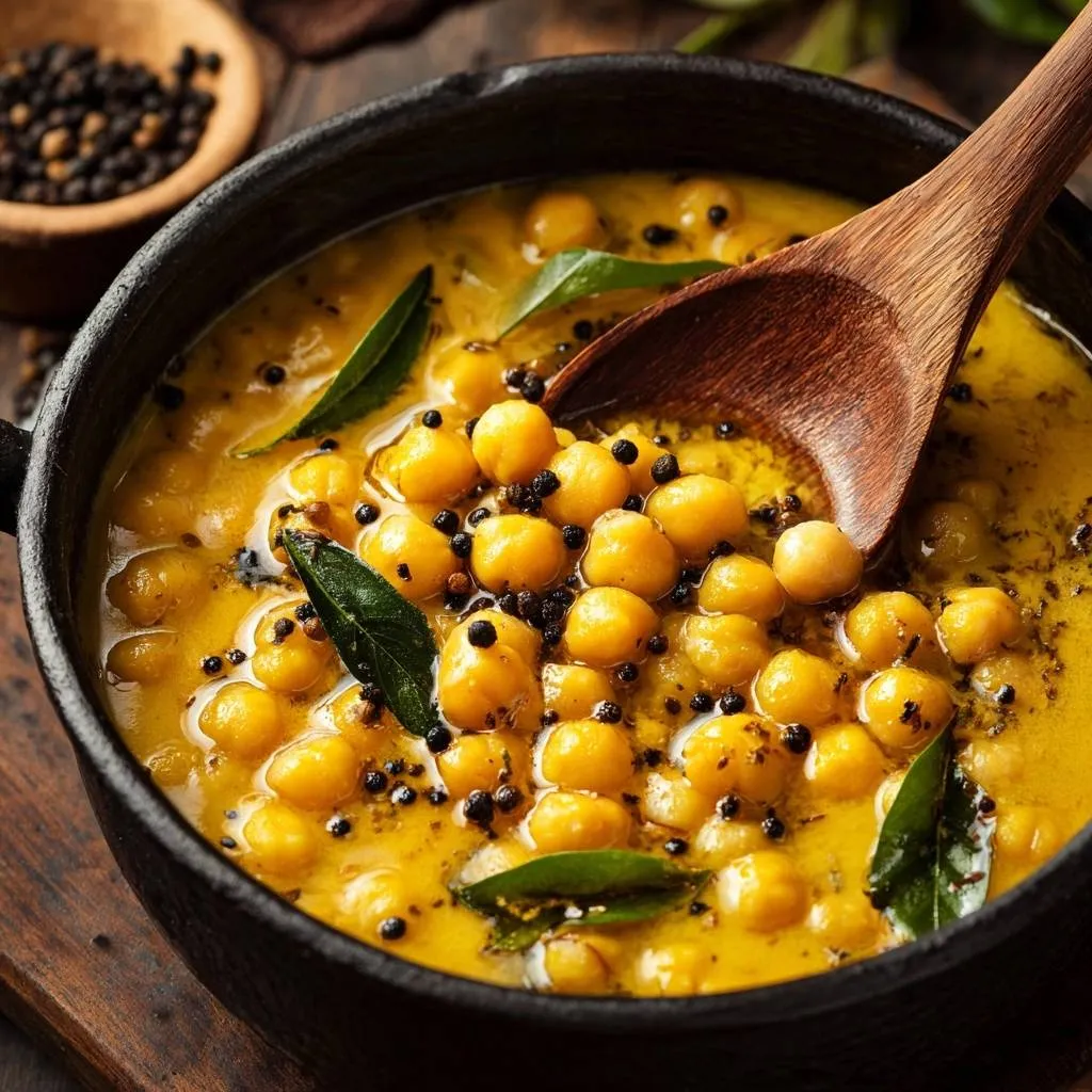 - To achieve the thick, velvety texture seen in the image, do not mash the chickpeas. Instead, allow the full-fat coconut milk to reduce over medium-low heat for 10-12 minutes. The high fat content will emulsify with the turmeric oil to create a vibrant, opaque yellow gravy.
