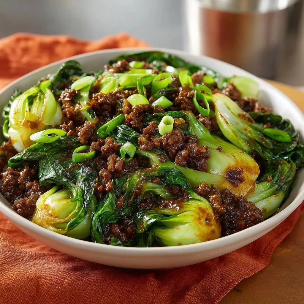 Toss everything rapidly for 60 to 90 seconds. You want every piece of bok choy and every crumble of beef to be enveloped in that sticky sauce. As soon as the sauce is thick and the leaves are a vibrant, glowing green, pull the pan off the heat. Every second it stays on the burner after this point increases the risk of the greens releasing water.