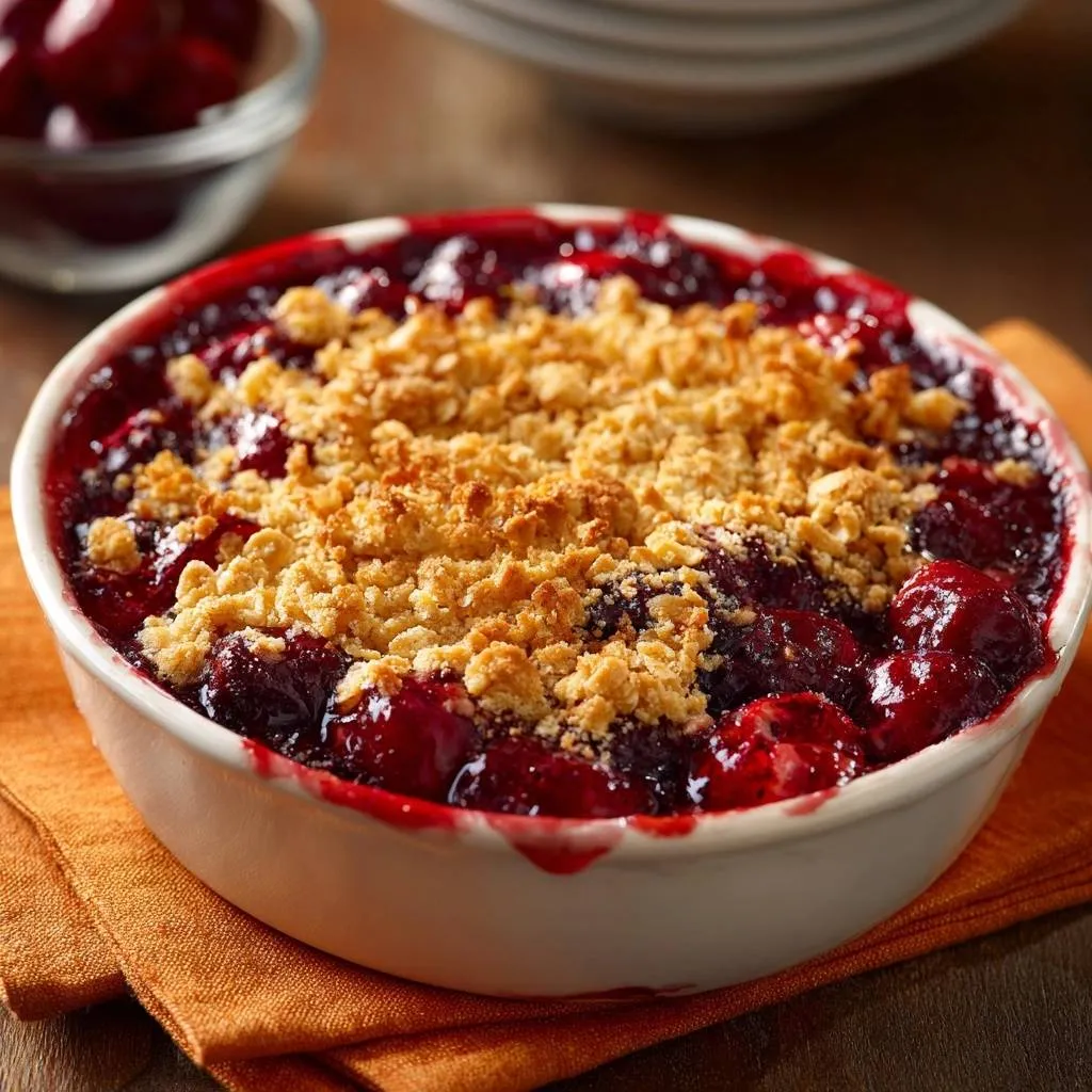 Imagine pulling a deep ceramic dish from the oven, its edges bubbling with a dark, ruby-red syrup that looks more like molten jewels than mere fruit. The topping isn’t a soft, cakey blanket, but a rugged landscape of golden, sandy clusters that shatter with a satisfying crunch under your spoon. This contrast between the jammy, concentrated stone fruit and the crisp, almond-flecked crumble is the hallmark of a perfect summer dessert.