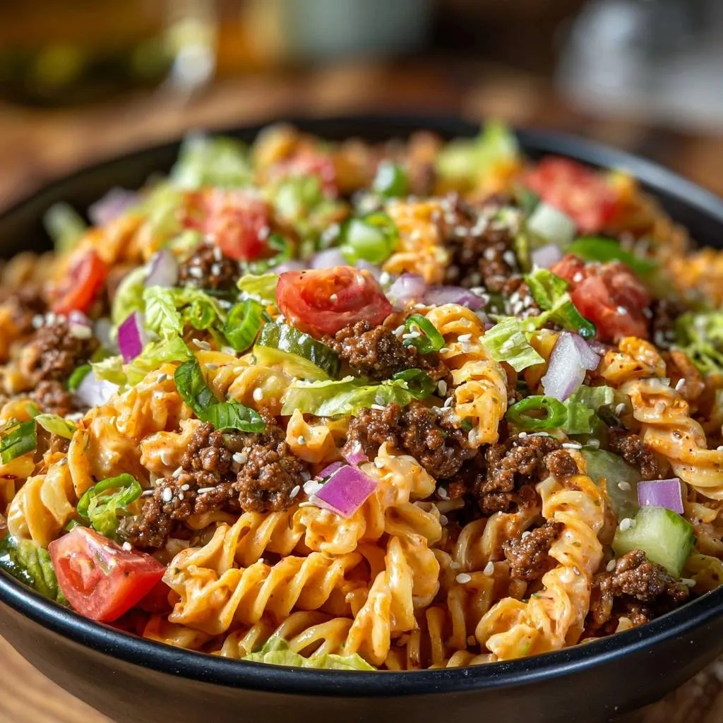 Zesty Cheeseburger Pasta Salad