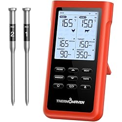 ThermoMaven 3000FT Smart Wireless Meat Thermometer, Sub-1G Long Range, 6 Sensors NIST Certified Accuracy, 2 Thin Probes, Standalone Base with Large LCD for Grill, Smoker, Oven, BBQ