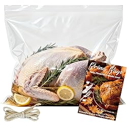 $75.99 (as of November 23, 2025 02:13 GMT +00:00 - More infoProduct prices and availability are accurate as of the date/time indicated and are subject to change. Any price and availability information displayed on [relevant Amazon Site(s), as applicable] at the time of purchase will apply to the purchase of this product.)Turkey Brine Bag Kit, 2 Pack 26"x22" Brining Bags for 25-35lb Turkey – Thickened Double Zipper, Leakproof with Strings, for Meat, Chicken, Fish