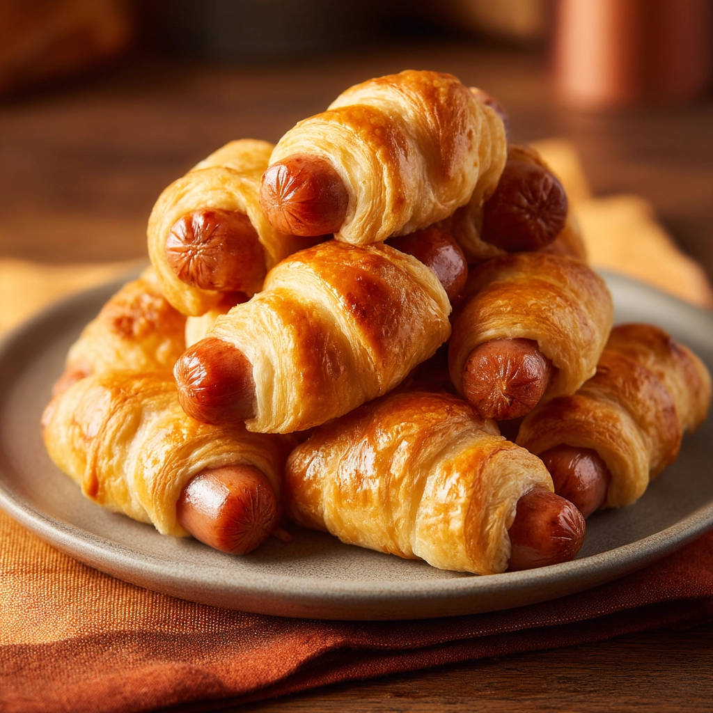 Get perfect golden pigs in a blanket every time with this simple trick! Easy recipe for crispy, flaky mini hot dogs wrapped in golden dough.