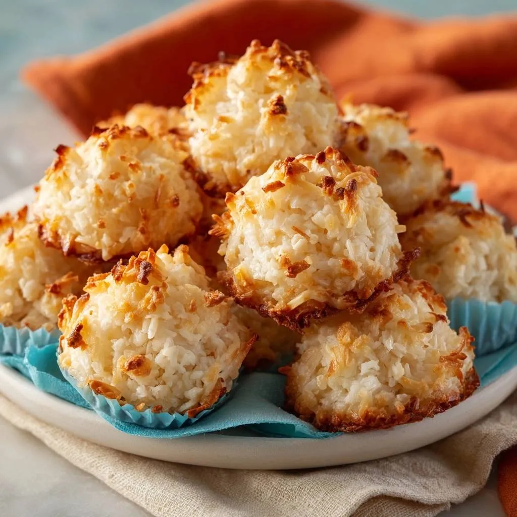 Keep baked coconut macaroons in an airtight container at room temperature for up to 3 days; they stay chewy without drying. For longer storage, freeze in a single layer on a sheet first, then transfer to freezer bags for up to 2 months. Thaw at room temp for 30 minutes; unbaked scoops freeze well too and bake straight from frozen, adding 1-2 minutes to time.