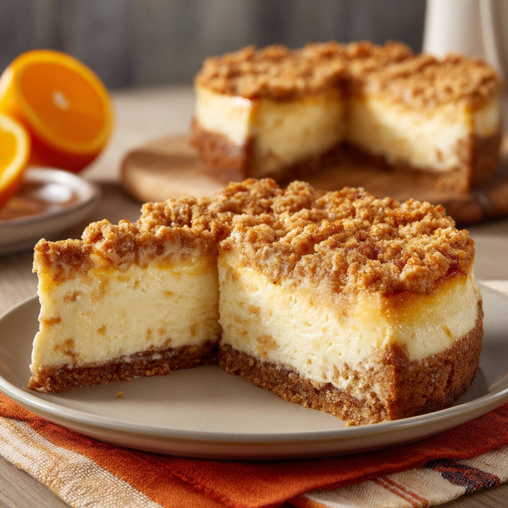 - Irresistible Textures: You get the classic crunchy graham cracker crust, the incredibly smooth and creamy cheesecake filling, a slightly tangy and soft orange layer, and the sweet, buttery crunch of the crumble topping. It’s a textural masterpiece!