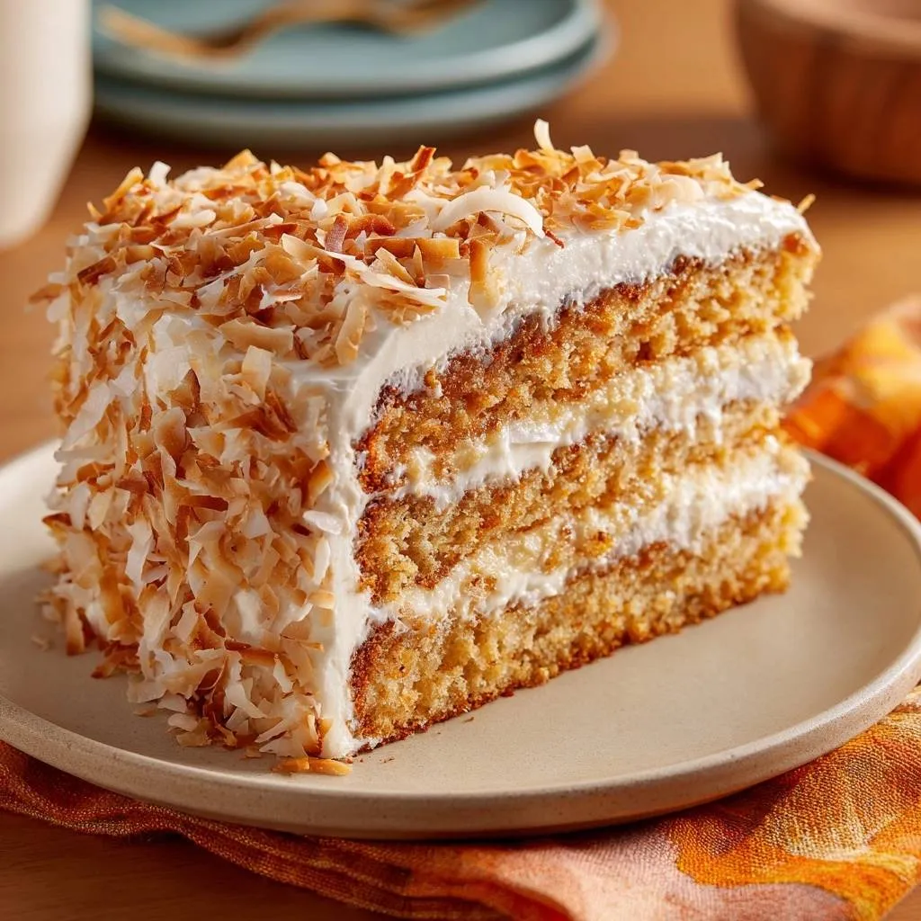 Toast coconut at 350°F for 8-10 minutes, stirring halfway to golden. Press onto cake gently. Store in fridge up to five days; flavors deepen beautifully.