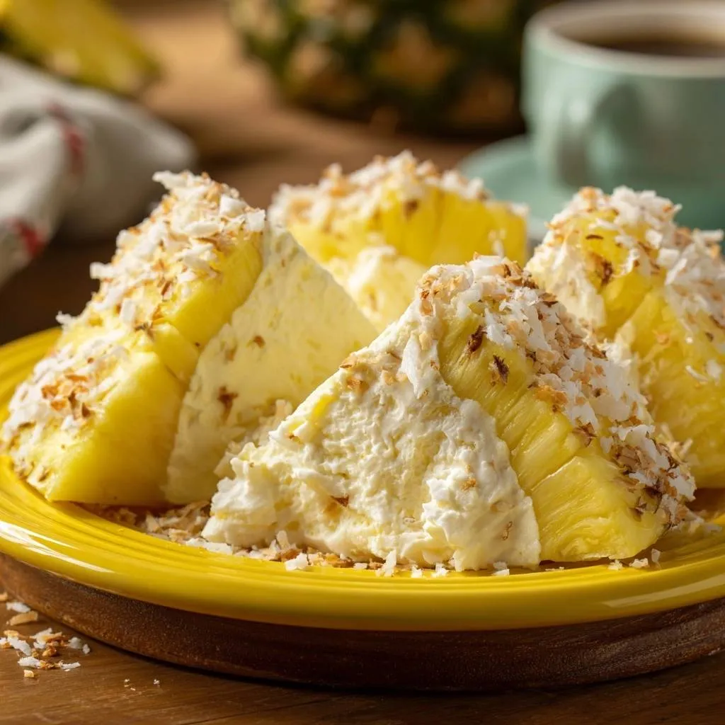 Use a serrated knife for clean cuts straight from the fridge. Serve ice-cold to lock in tropical flavors of coconut pineapple stacks. Garnish with mint if you like.