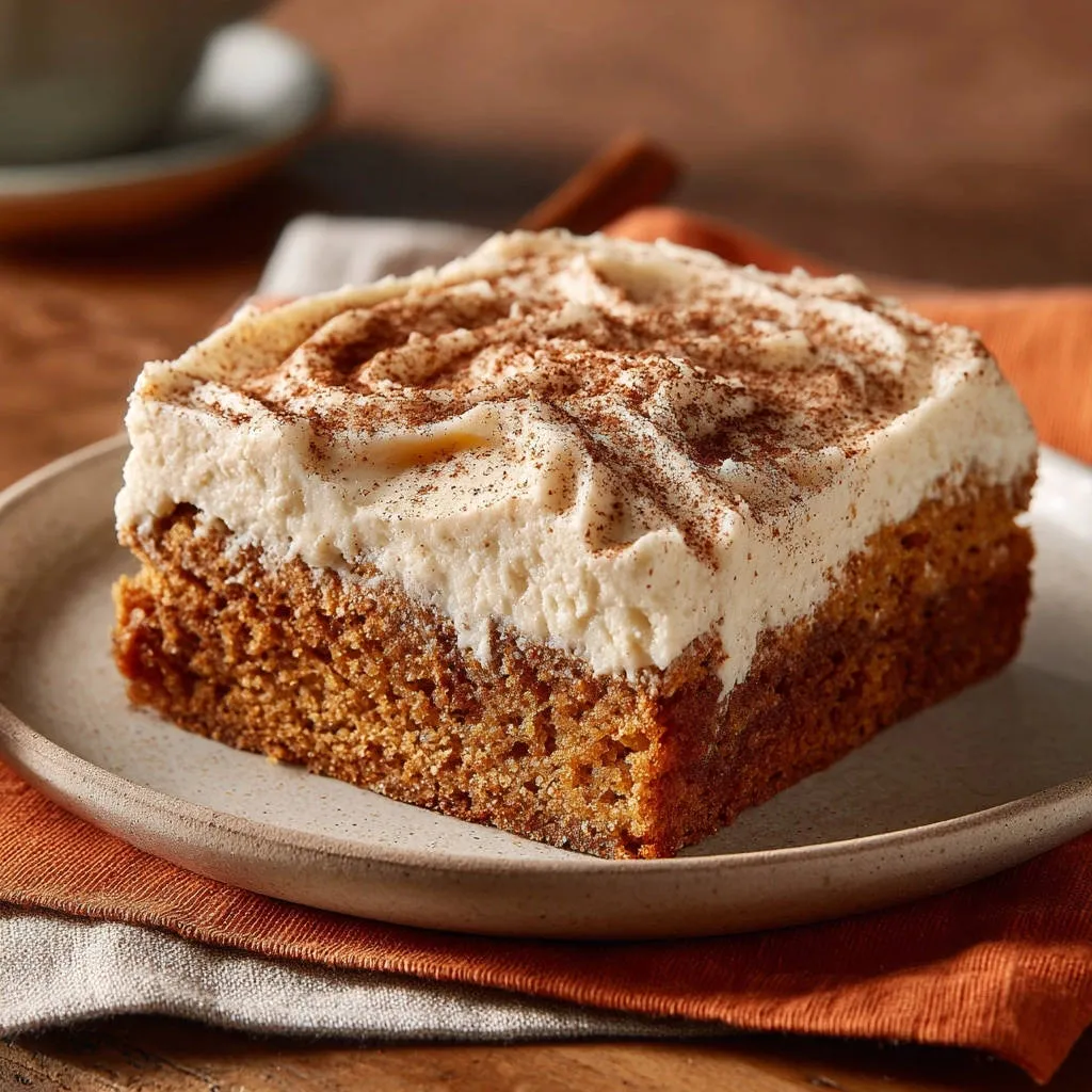 Allow the Pumpkin Spice Cake with Cream Cheese Frosting to come to room temperature for at least 30 minutes before serving; this ensures the frosting is perfectly soft and the cake’s flavors are fully expressed.