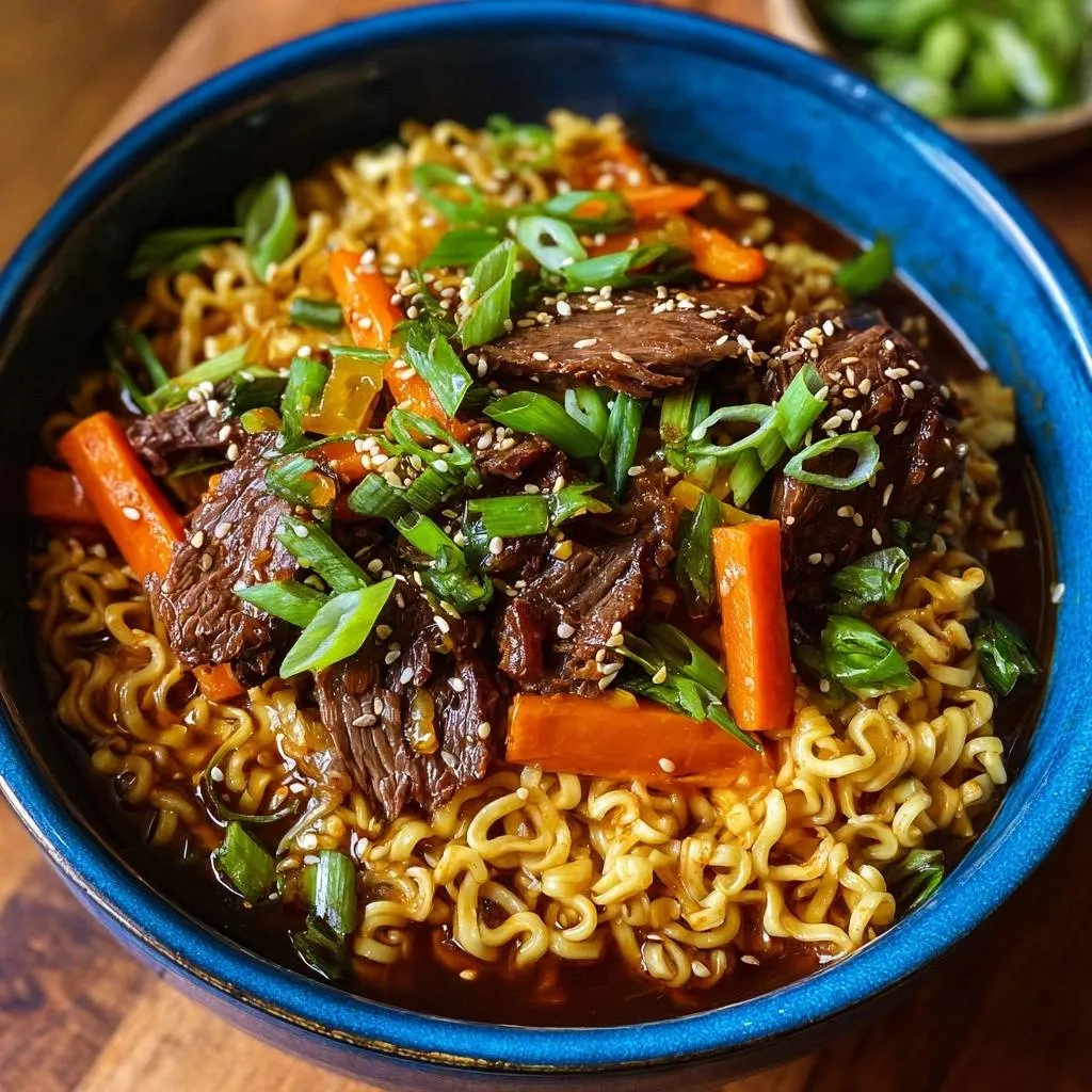 Julienned carrots stay crisp, adding crunch. Sesame oil prevents noodle sticking and adds nutty aroma. These make your saucy beef ramen addictive.