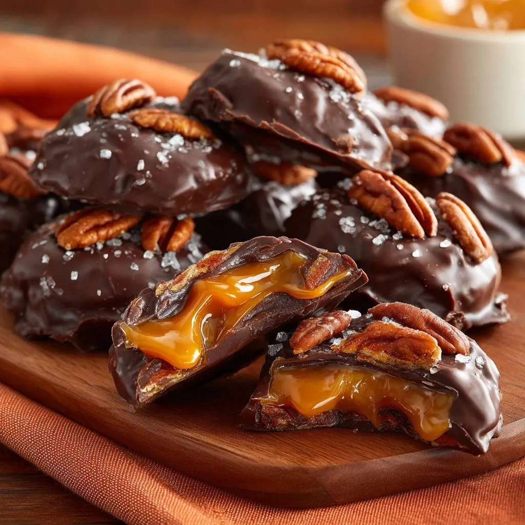 - Arrange pecans in clusters of 4-5 on parchment. Spoon 1 tablespoon warm caramel over each cluster, ensuring it binds the nuts without overflowing. Chill 20 minutes to set.