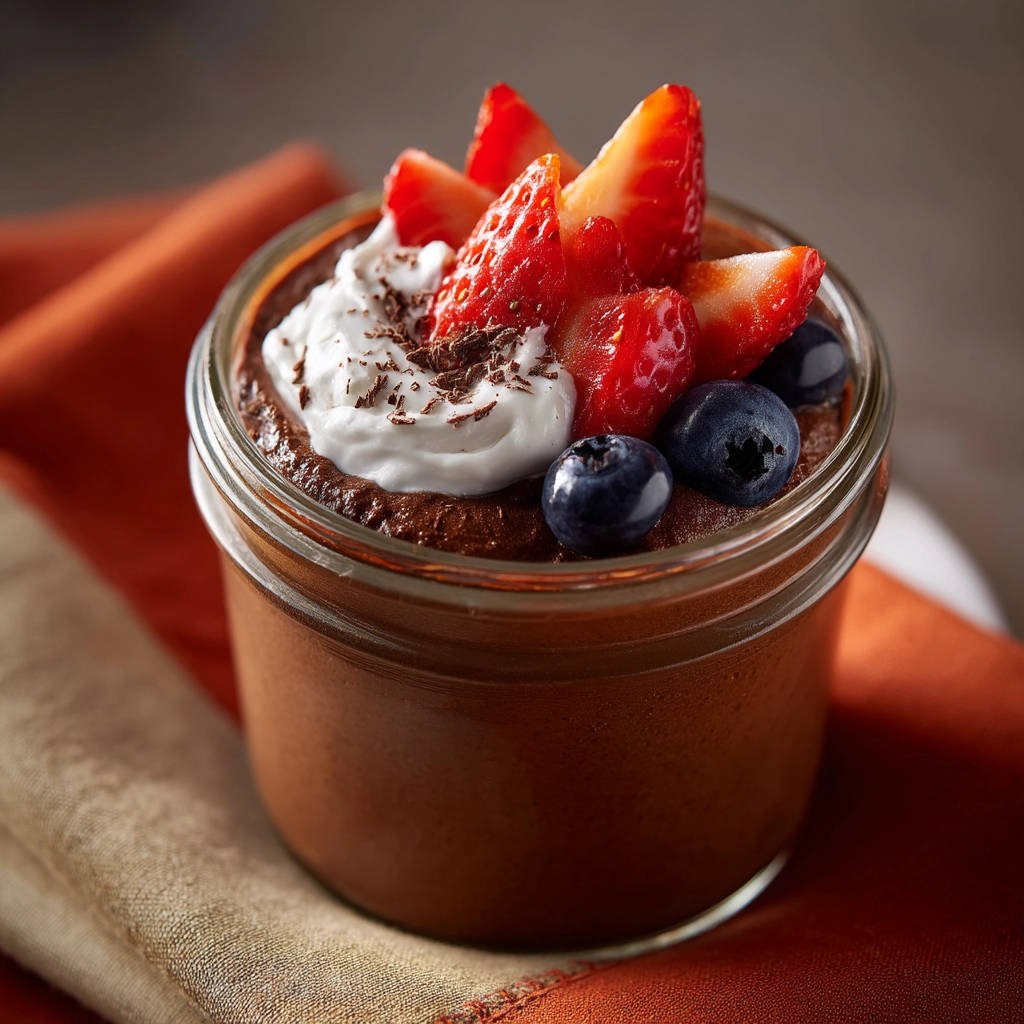 - Garnish and Serve: Just before serving, garnish with whipped cream, fresh berries (strawberries and blueberries are classic choices!), and chocolate shavings, if desired. These toppings add a touch of elegance and complement the rich chocolate flavor beautifully.