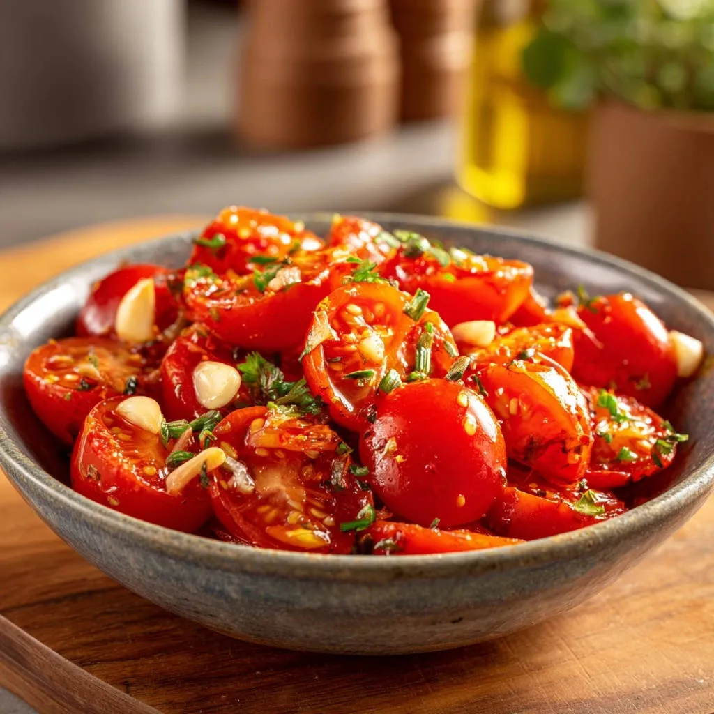 - Prepare Your Tomatoes: Start by giving your beautiful tomatoes a gentle rinse under cool water. Pat them thoroughly dry with a clean towel or paper towels. Excess water will dilute the flavor we’re trying to build. Next, size matters! If you have larger cherry or grape tomatoes, cut them in half or even quarters. Smaller ones can be left whole, but halving does help expose more surface area, which is key for the next step and allows flavors to penetrate better. Place all the prepped tomatoes into a medium-sized bowl.