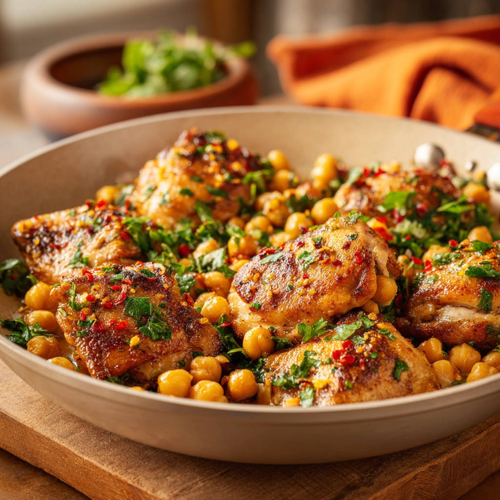 Store any leftover Skillet Chicken, Chickpeas, and Greens in an airtight container in the refrigerator. It will keep well for 3 to 4 days. To reheat, gently warm it on the stovetop over low-medium heat, adding a splash more broth or water if needed to loosen the sauce. You can also reheat individual portions in the microwave, though the stovetop method is often preferred for more even heating.