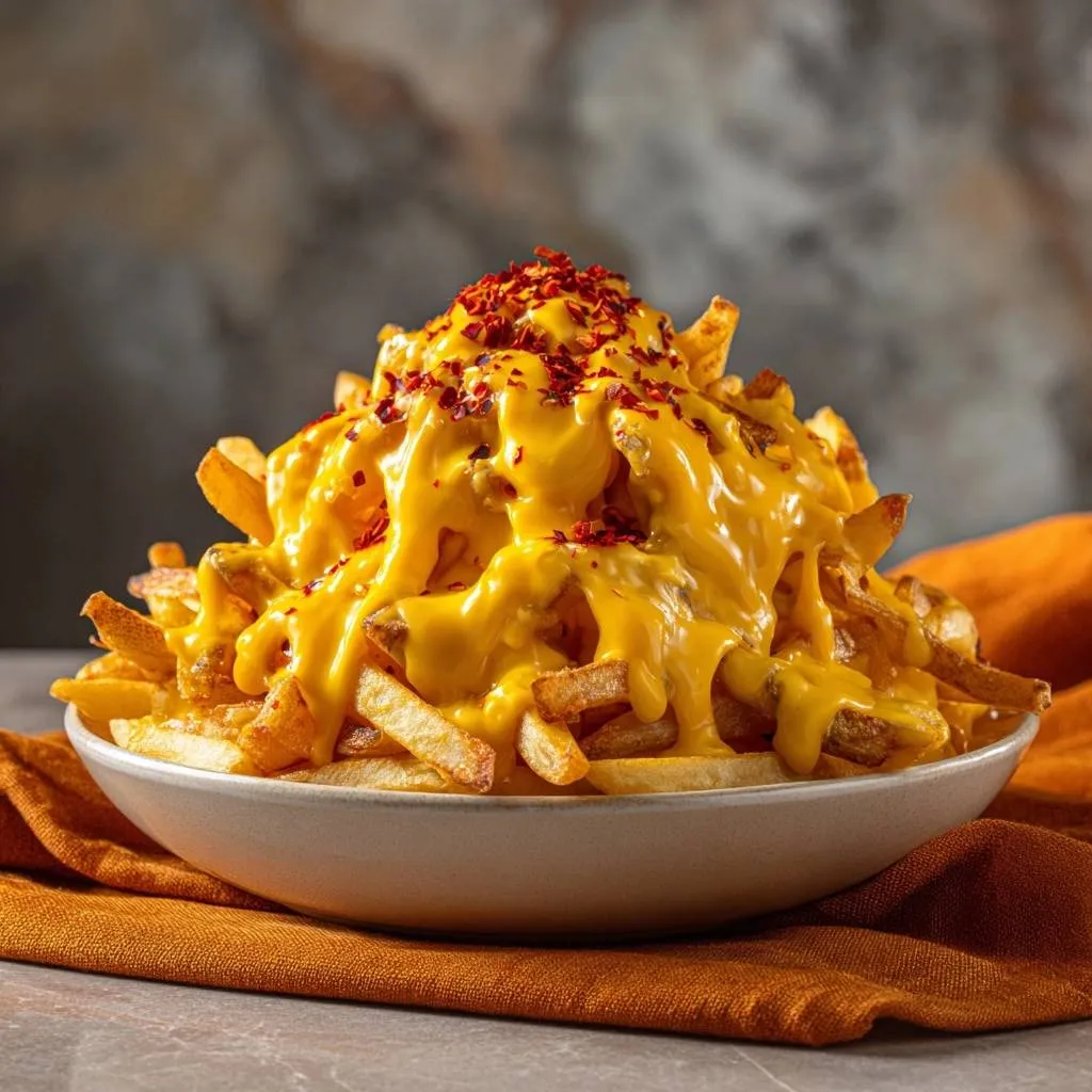 Therefore, you get that perfect crunch no matter how much melty cheese and spicy kick you pile on. The contrast hits every time: shatteringly crisp fries cradling smoky bacon bits, gooey sharp cheddar sauce, and a fiery red pepper flake punch that builds heat bite by bite.