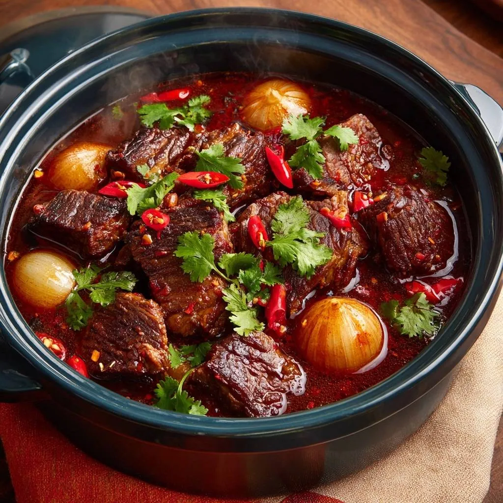 - Pat beef completely dry before searing for best crust. Braise undisturbed for perfect tenderness. Adjust chilies for spice level.