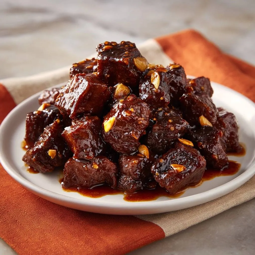 After marinating, the beef looks glossy and coated. High heat then crisps the outside while keeping the inside succulent. That’s the tender magic in Spicy Glazed Beef Bites with Peanuts.