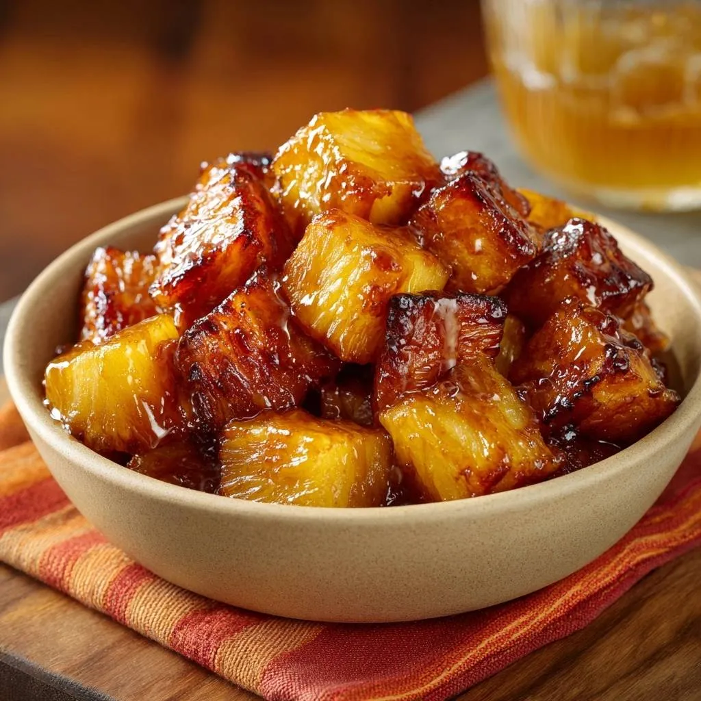 - Cook undisturbed for 4 to 5 minutes until the bottoms are deeply golden and caramelized with charred edges. The pineapple will release its juices, but the high heat evaporates them quickly, preventing any watery glaze. Flip chunks and cook the other side for 3 to 4 minutes more.